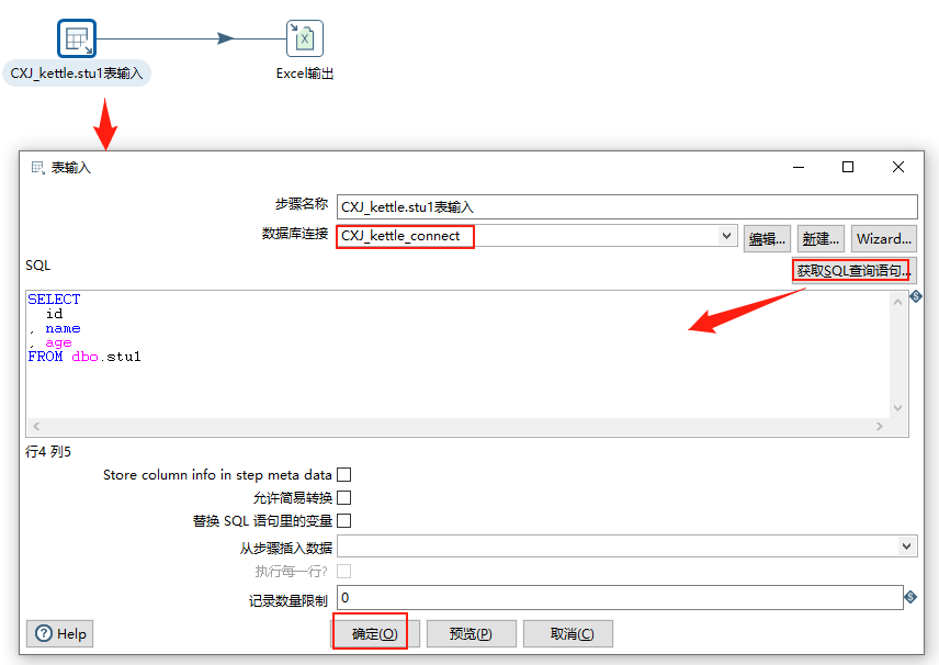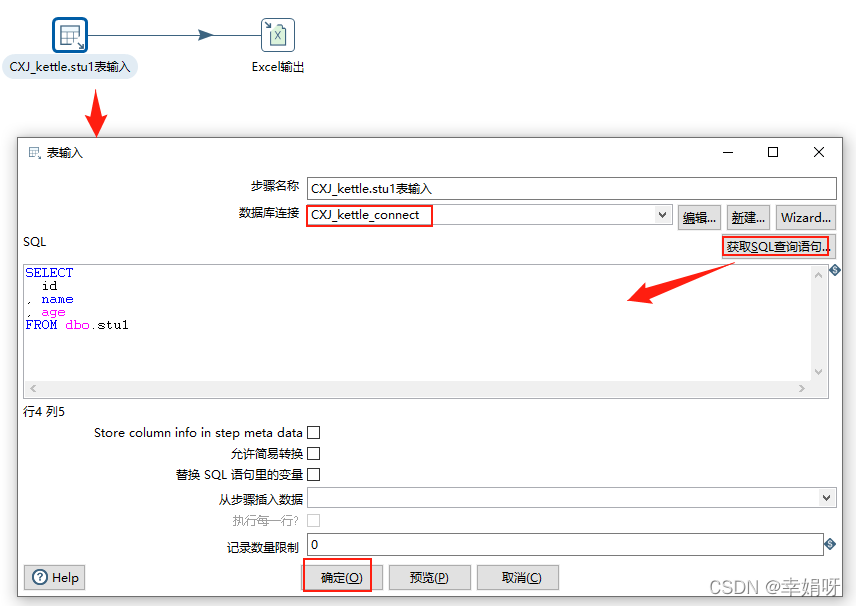 关于如何设置数据库连接“CXJ_kettle_connect” 可参考系列文章:Kettle(二):连接SQL Server数据库