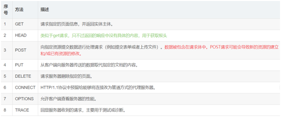 HTTP协议里定义了一些请求的方法或者叫动词,这些方法和动词可以进一步定义请求的目的,比如是获取资源还是创建资源等;常用的是GET、POST。