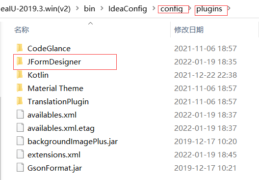 再进入plugins文件夹就可以看到JFormDesigner的安装文件夹