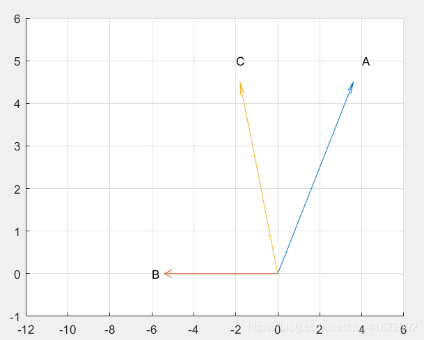 样例七:已知向量A、B,求A+B,并用矢量图表示。