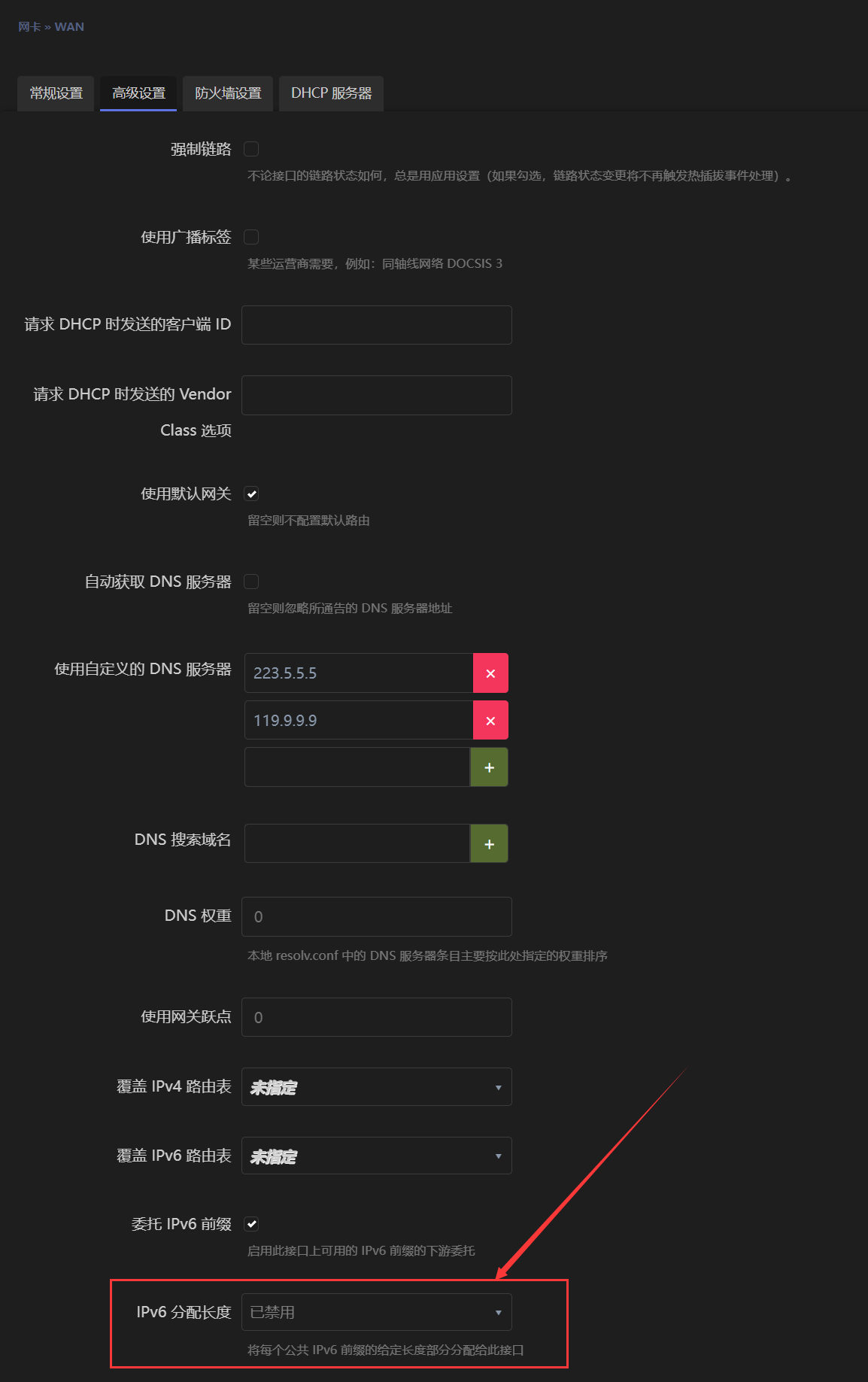 在 网络 > 网卡 中,有个名为WAN6的接口,我们把他删除掉