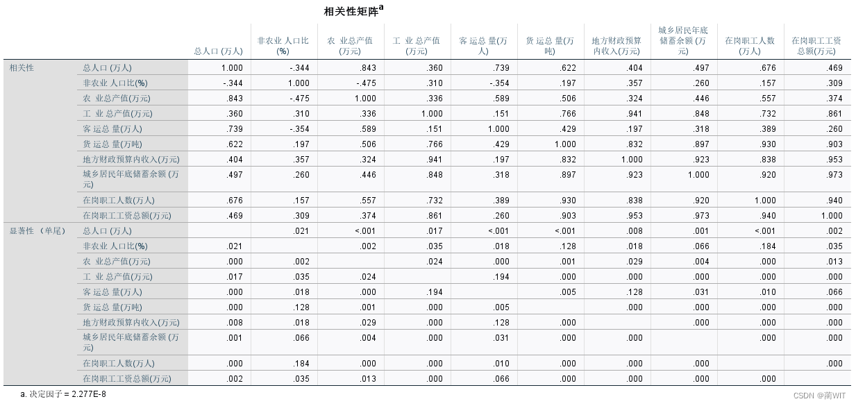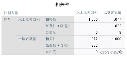 - “**”表示相关系数的显著性概率水平为0.01。“*”表示显著性水平为0.05。在自由度为12-2-1=9时,查t分布表,t在置信水平之下,偏相关系数0.077是不显著的。