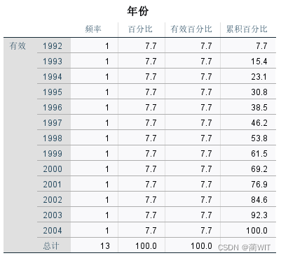 年份 | 1992 | 1993 | 1994 | 1995 | 1996 | 1997 | 1998 | 1999 | 2000 | 2001 | 2002 | 2003 | 2004 |