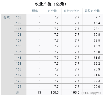 农业产值 | 108 | 109 | 115 | 121 | 127 | 135 | 133 | 141 | 151 | 153 | 167 | 170 | 176 |