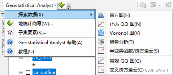 1、数据转矢量,利用ArcGIS进行初步分析。打开ArcGIS软件,通过添加XY坐标的方法,将数据以矢量点的形式添加到图层中显示;利用【Geostatistical Analyst】模块中的【探索数据】分析其趋势。