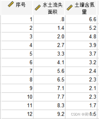 序号 | 水土流失面积 | 土壤含氮量 | 序号 | 水土流失面积 | 土壤含氮量 |