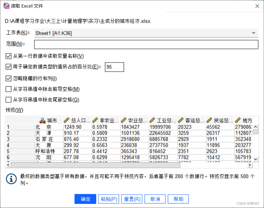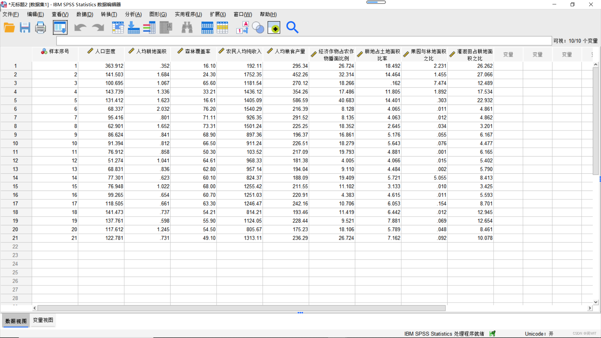使用SPSS(27版本)以及ArcGIS软件做的一些计量地理学实验步骤记录与简略分析。主要有如下一些实验:地理数据的统计处理、相关分析、主成分分析、多元线性回归分析、聚类分析、时间序列数据分析、因子分析、地统计分析、趋势面分析、马尔可夫分析。