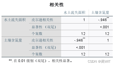 二、实验内容:运用SPSS应用软件中的Correlate模块,利用表2中的数据,针对水土流失面积与土壤氮含量进行相关分析,进行两两要素间的相关分析,并能够进行检验;运用SPSS应用软件中的Regression模块建立一元线性和非线性方程,并进行检验,利用所给数据进行预测。
