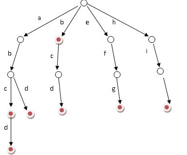 性质: 1.根节点不包含字符,除根节点外每一个节点都只包含一个字符;