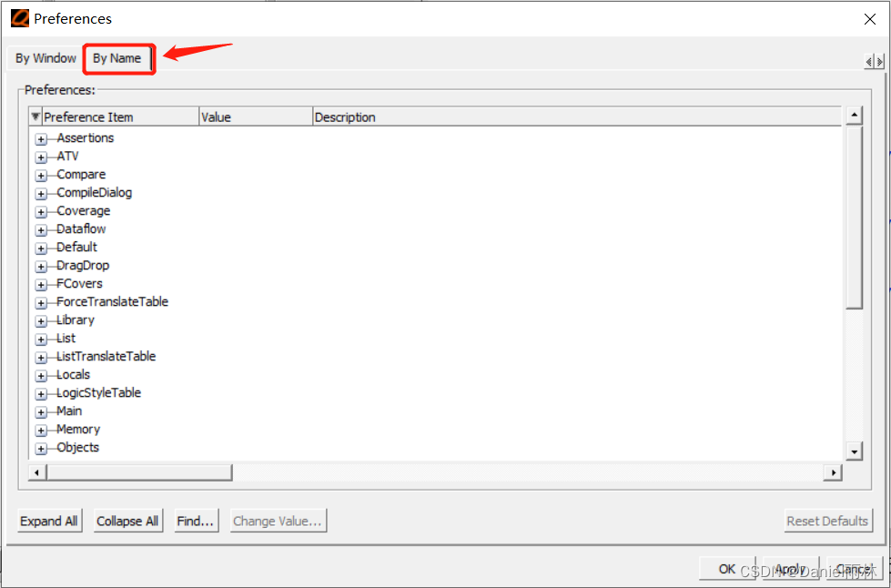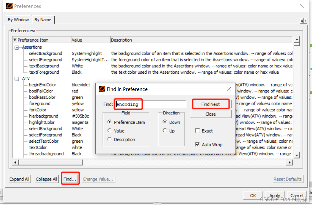 在QuestaSim按如下顺序打开对应窗口, Tools -> Edit Preferences -> By Name -> Find