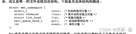 第三个目录结构是namespace结构体,由进程描述符mmt_namespace域指向
