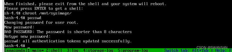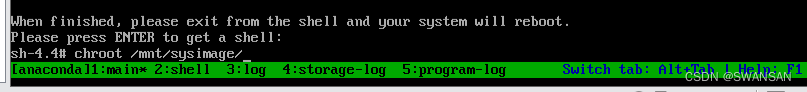 7、手动输入chroot /mnt/sysimage/ 进入到我们自己的系统