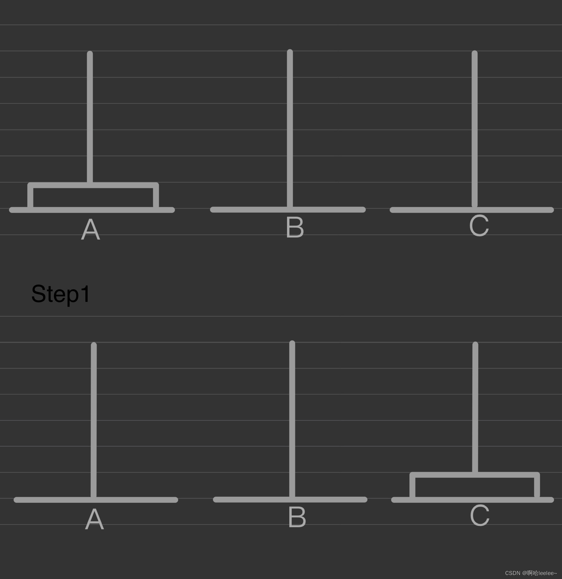Move(n, A, C); //第n个盘子从A杆移到C杆