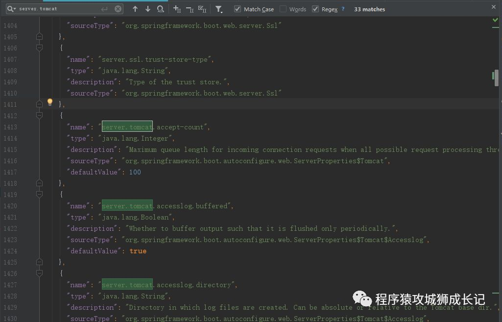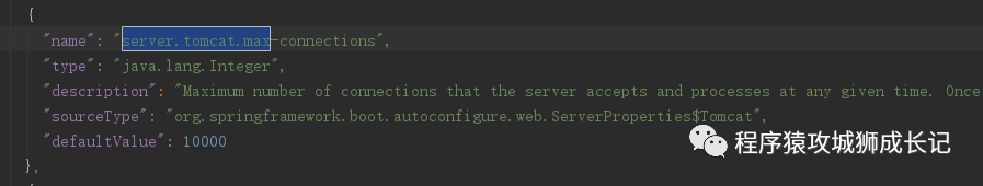 spring boot的关于tomcat的配置在spring-configuration-metadata.json文件中,并且以server.tomcat开头。