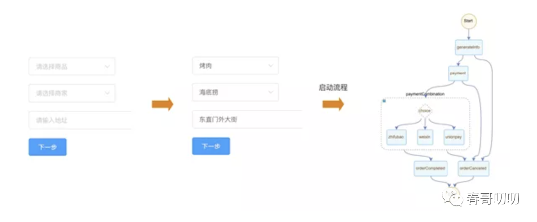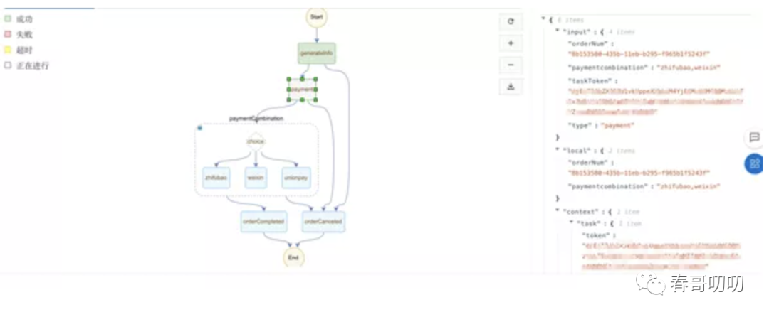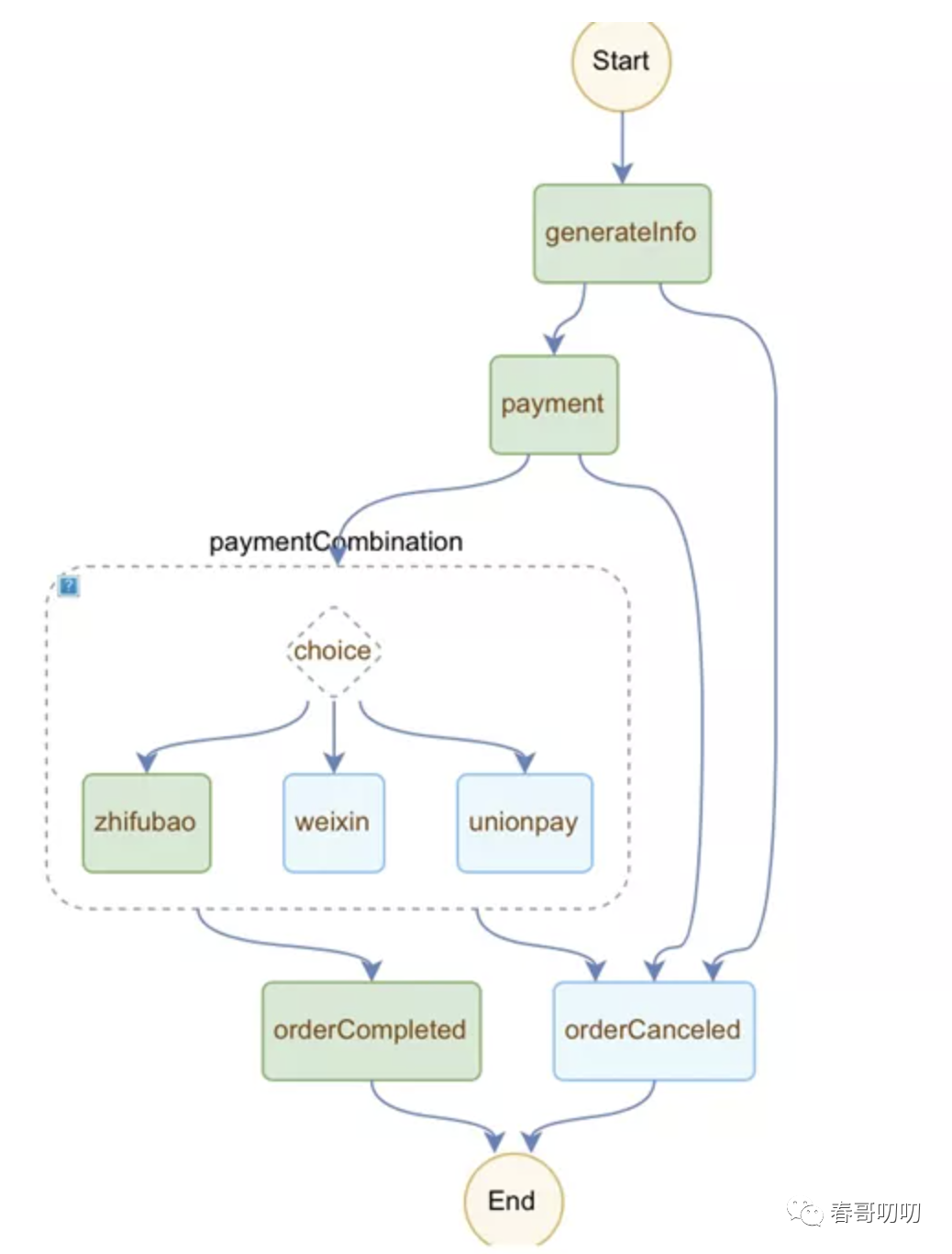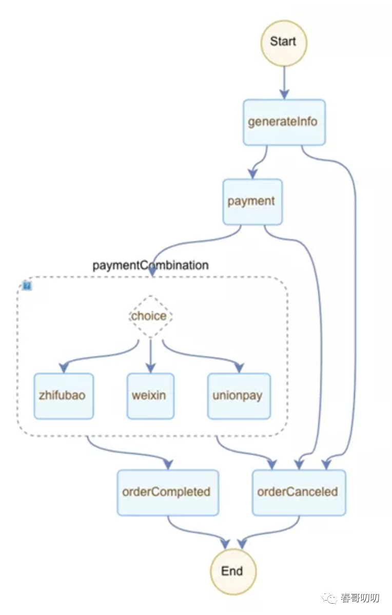 流程中的 orderCompleted 和 orderCanceled 节点没做什么逻辑,流程如下: