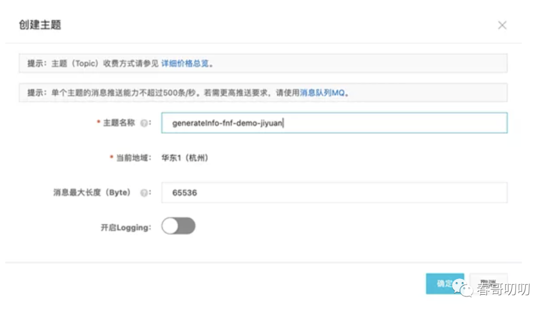 generateInfo-fnf-demo 函数配置了 MNS 触发器,当 TopicgenerateInfo-fnf-demo-jiyuan 有消息后就会触发执行 generateInfo-fnf-demo 函数。