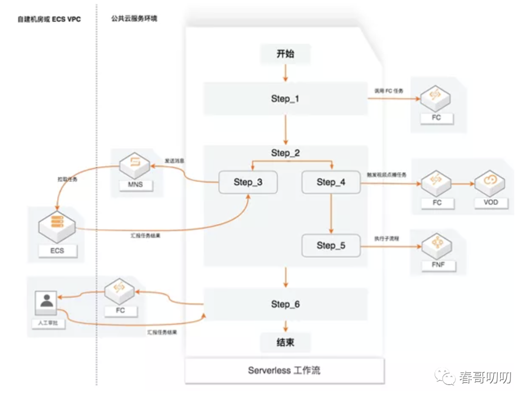 从 Serverless 工作流中看到的节点流转是这样的: