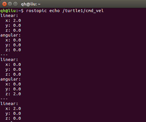rostopic echo /turtle1/cmd_vel结果如下