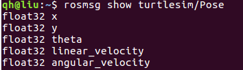 geometry_msgs/Twist我们可以使用 rosmsg 来查看一个消息类型的详细信息: