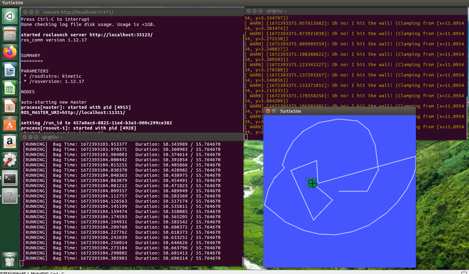 ~$ rosbag play cmd_record.bag小海龟就开始按照之前记录的路径开始移动了~~~