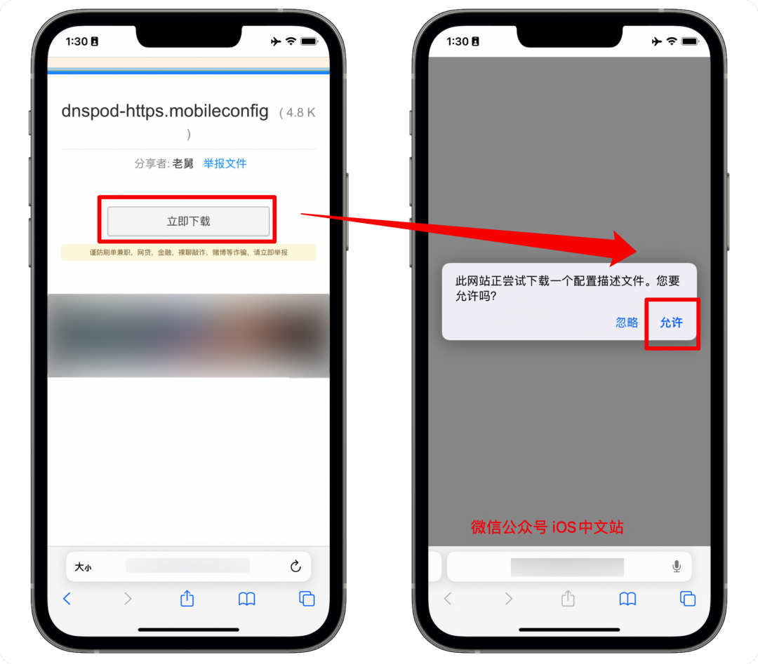 所以要解决这个问题,我们需要给iPhone安装一个描述文件(下文获取),把iPhone的DNS解析强制改成微信的东家(腾讯)的 DNSPod 服务,即可解决了,这个服务是免费使用的。