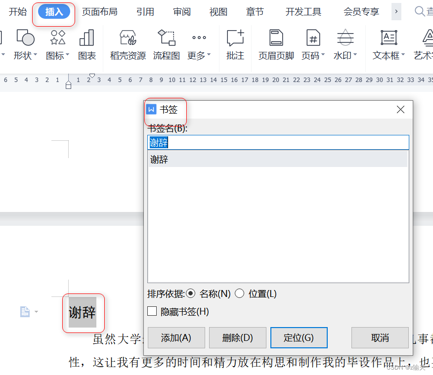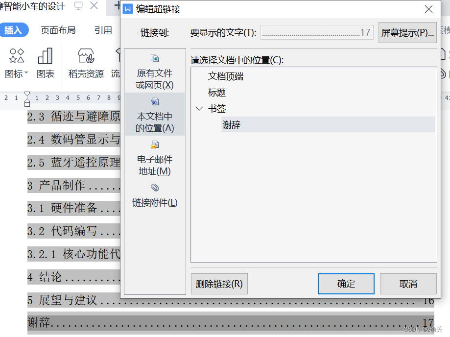 然后在目录中输入目录内容,然后选中设置成超链接,在超链接中选择刚刚建立的书签即可。