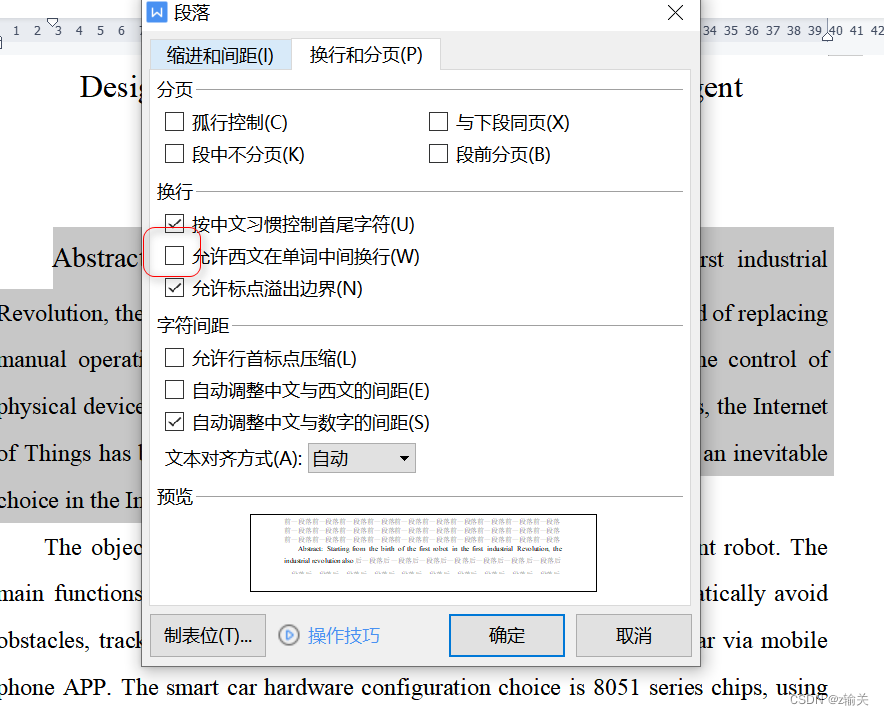 1、英文单词在换行时断开,在设置段落后有很大空格