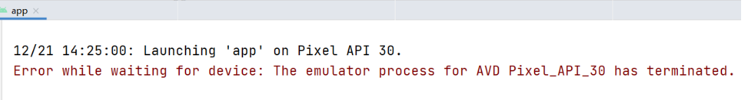 接下来我们再来说第二个问题,我们创建好模拟器后,点击绿色按钮,模拟器没反应,类似于这样,这是因为我们没有配置环境变量的原因
