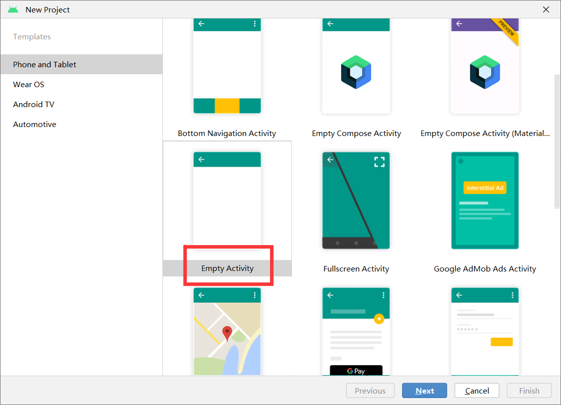 到达上面这个界面之后我们先创建一个新的project,选择Empty Activity,点击next