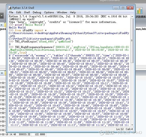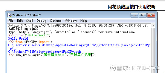 在完成上述操作后,您同样能够运用python提取数据。若需要在python中提取数据,您需要首先将同花顺iFinD数据接口的包导入到python当前的环境中。详细操作如下:打开IDLE输入:from iFinDPy import *之后输入登录函数,登录您的账号: