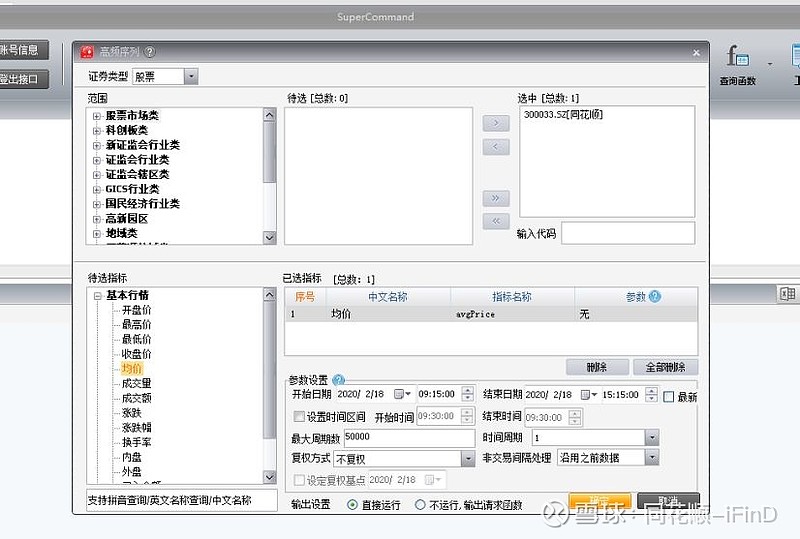 之后,可以任意选择一项函数功能,输入股票代码,选择指标。点击确定,即可在超级指令上提取相关代码的详细指标,如图:
