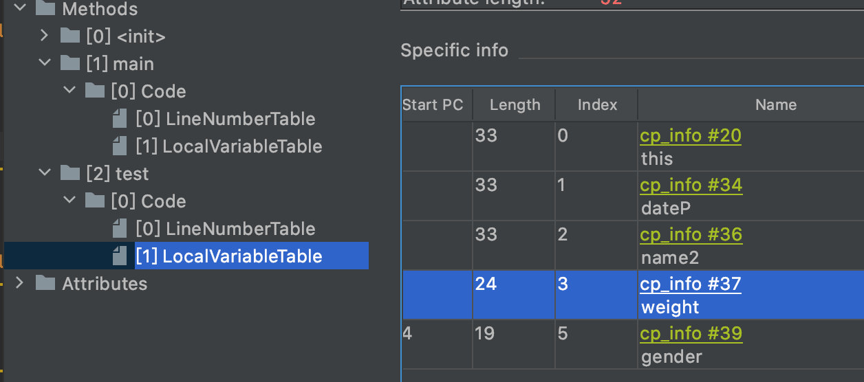 我们可以看到它对应的常量池#3对应的属性 #28.#29 两个,