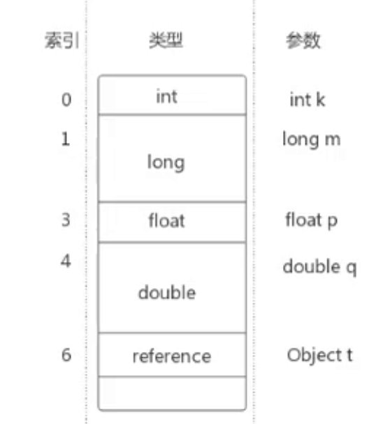 定义为一个数字数组,主要用于存储方法参数和定义在方体内的局部变量,这些数据包含基本数据类型,对象引用,以及returnAddress类型。