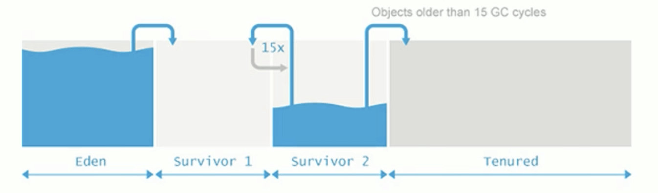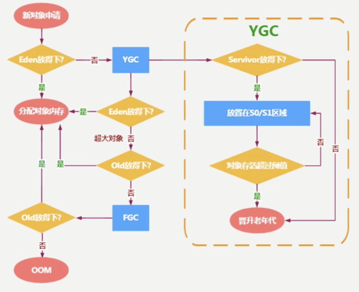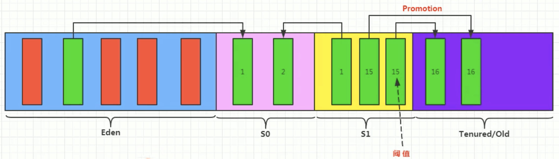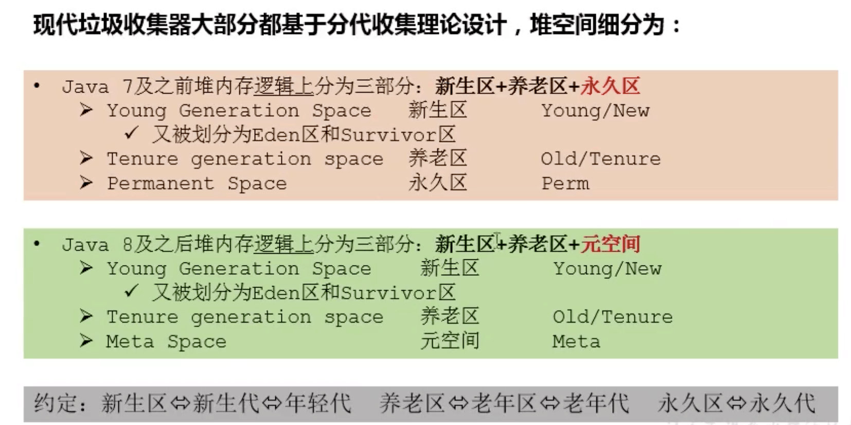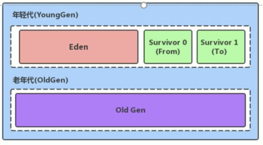 Java堆分为年轻代(Young Generation)和老年代(Old Generation);年轻代又分为伊甸园(Eden)和幸存区(Survivor区);幸存区又分为From Survivor空间和 To Survivor空间。