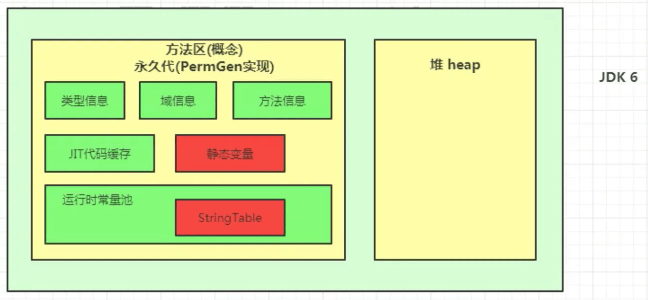 jdk1.6及之前:有永久代(permanent generation) ,静态变量存放在 永久代上。