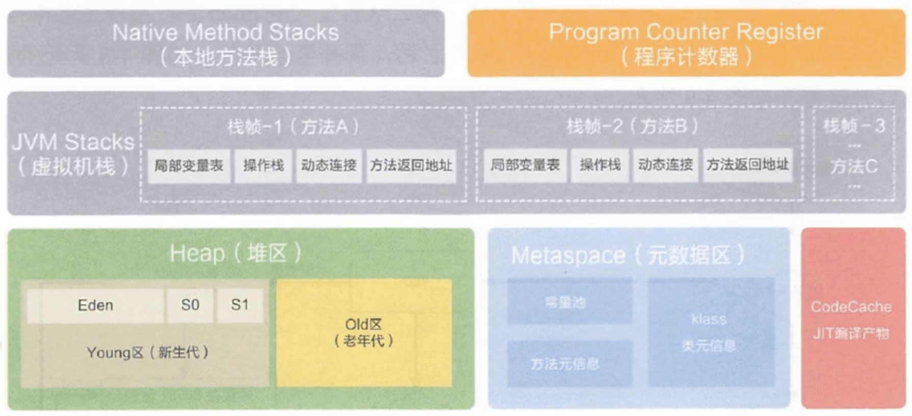 《深入理解Java虚拟机》书中对方法区存储内容描述如下:它用于存储已被虚拟机加载的 类型信息、常量、静态变量、即时编译器编译后的代码缓存等。