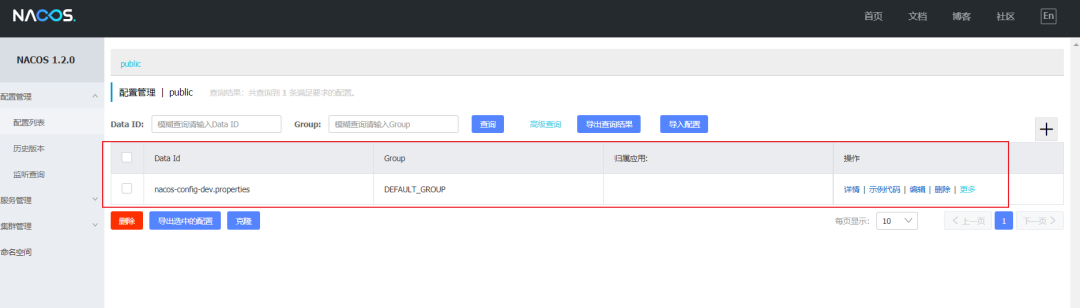 如何验证是否持久化呢?很简单,只需要创建一个配置,然后在his_config_info表中查看下是否存在即可,如下图: