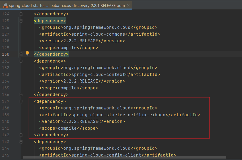 其实Nacos集成了Ribbon,何以见得呢?打开spring-cloud-starter-alibaba-nacos-discovery的依赖一看便知,如下图:
