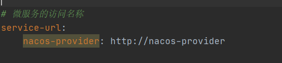 serviceUrl是什么东西呢?难道是IP地址?当然不是,既然nacos-provider和nacos-consumer都已经注册到nacos中,那么可能是可以直接通过服务名直接找到对应得服务,因此这个serviceUrl=http://service-name,如下图: