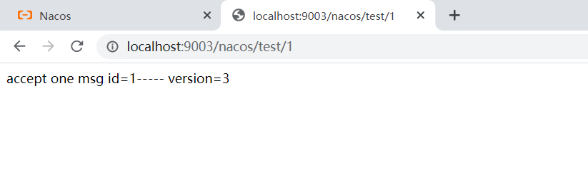 上面配置完毕,启动nacos-config-share这个项目,访问:http://localhost:9003/nacos/test/1,结果如下图: