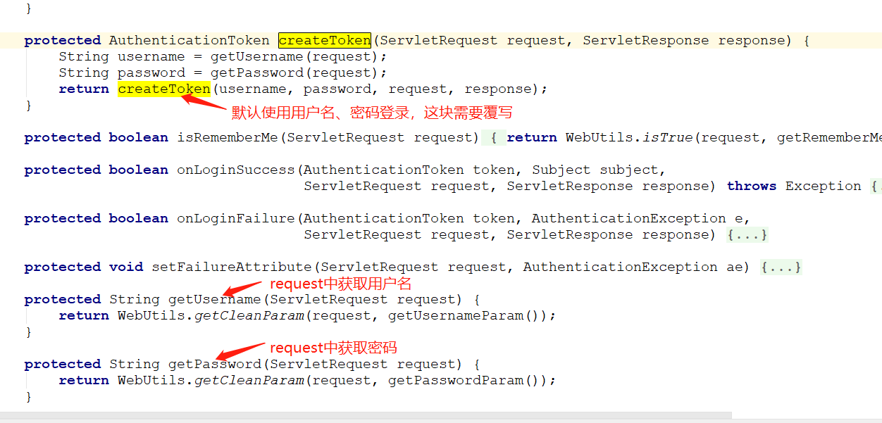 2)覆写FormAuthenticationFilter类的父类AuthenticatingFilter中的createToken方法