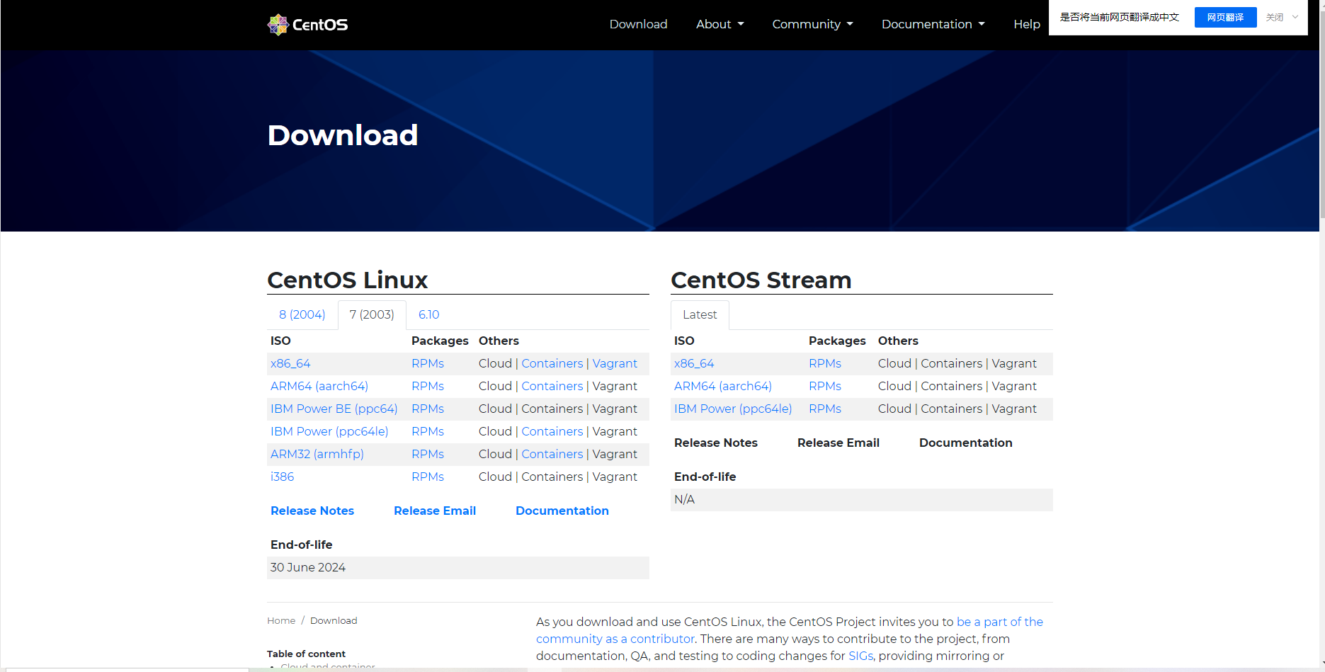 1.在浏览器里,搜索官网下载最新版本:https://www.centos.org/download/进入该页面:
