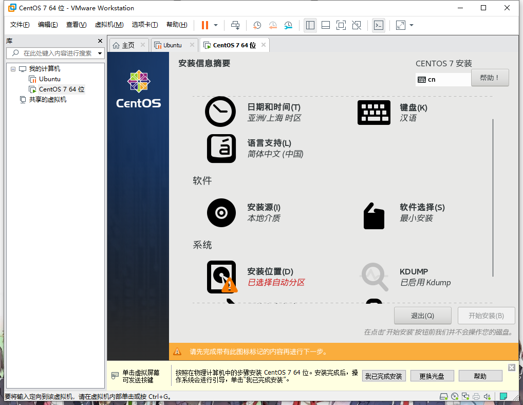 选择第一项,安装直接CentOS 7,回车,进入下面的界面