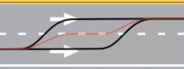 先看路径规划,两条黑线代表不同的变道的可行解,中线红线是二者的线性组合,这条红线明显不是可行解,因为变道太慢,虚线行驶距离过长,如果中间有一障碍物,就更不可行了。
