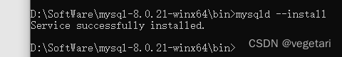 在安装mysql ,执行mysqld --install 命令时,报出了下面的错误