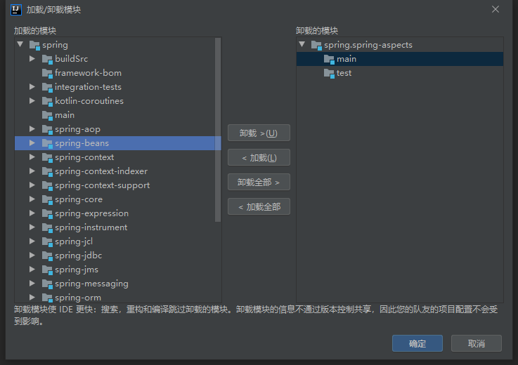 选中spring-aspects,右键Load/Unlaod modules,选择卸载,重新build