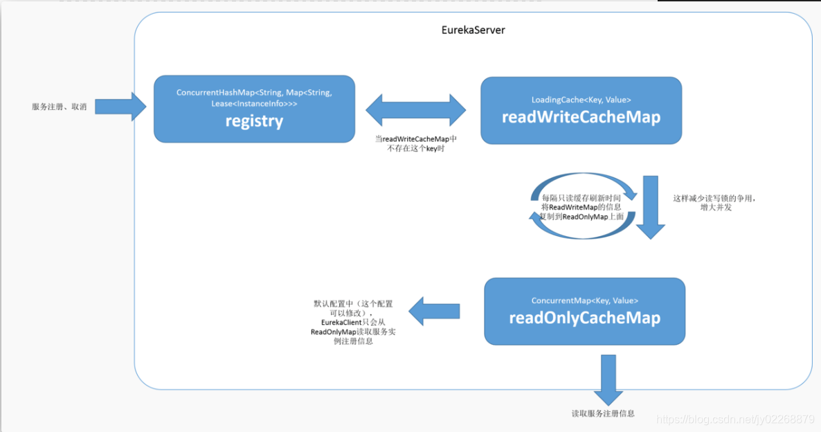 1.Eureka Client 发送 register、renew 和 cancel 请求并更新 registry 注册表之后,删除readWriteCacheMap缓存;