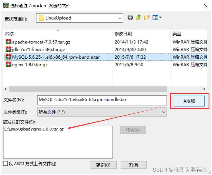 点击添加、确定后上传