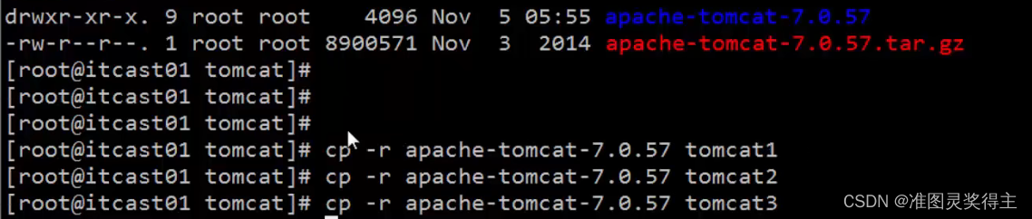 将刚才的存放工程的tomcat复制三份