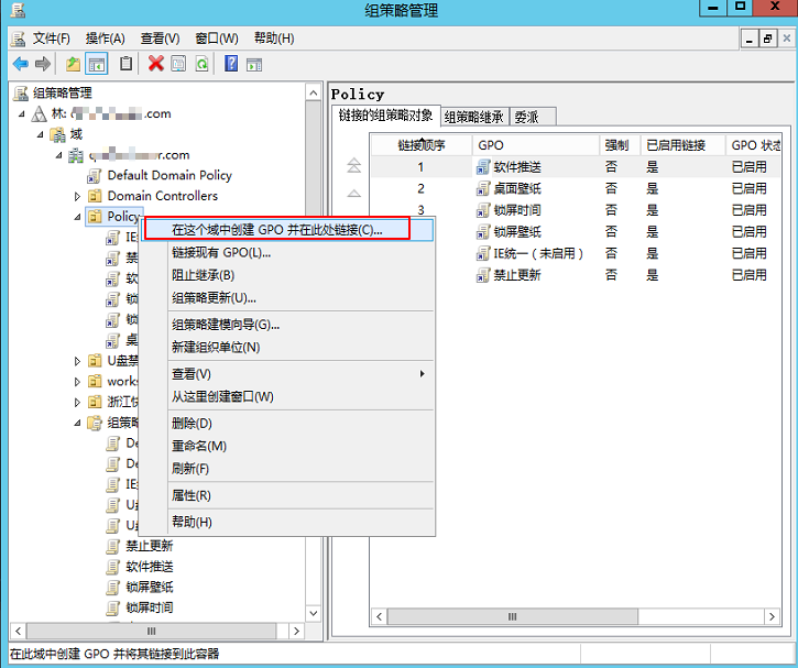 创建一条组策略并把它连接到您想要这条组策略生效的域或者OU: